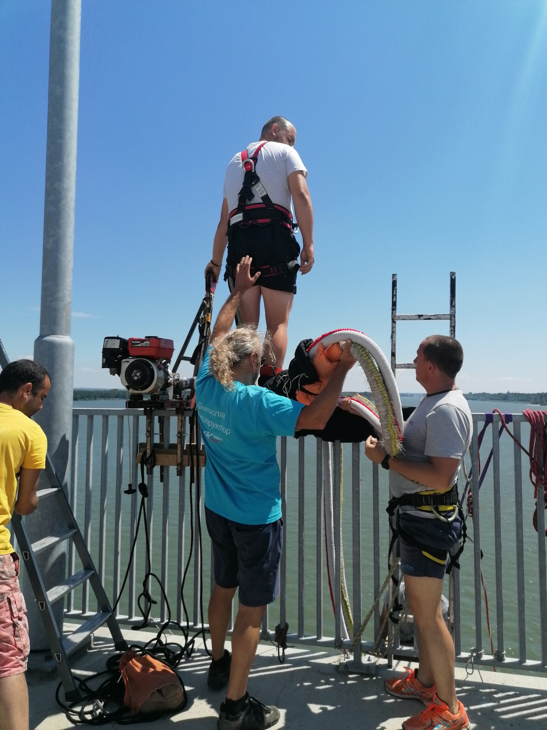 Иначе въпроси от рода на „няма ли опасност да се скъса въжето” са дежурни и странното е, че ги задават леки хора. Те трябва да се молят да им се разтегне въжето, не да се скъса. В тежката категория можем да хвърлим до 180 кг. Имаме оборудване и за тандемите, те понякога са и над 200 кг. Най-тежкият човек, който е скачал с нас, беше 160 кг, сумист.