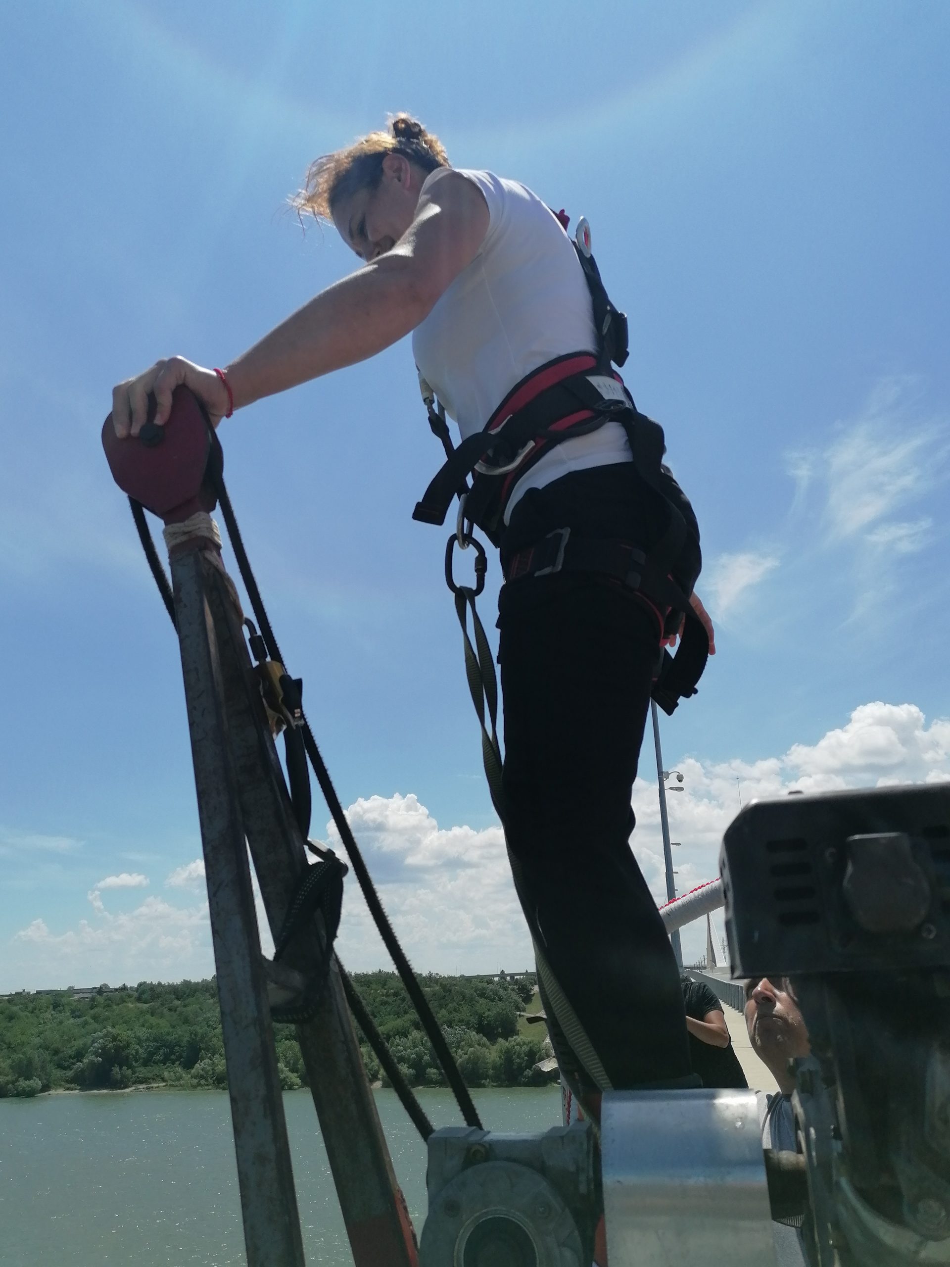 Срещам го на Дунав мост 2 две години след първия си бънджи скок. Записала съм се за там заради адското количество адреналин, от което имам нужда през известен период от време и който период, за моя радост, с напредването на годините все повече се скъсява. Иначе, ако е само за да се разбере усещането, и един скок е достатъчен.