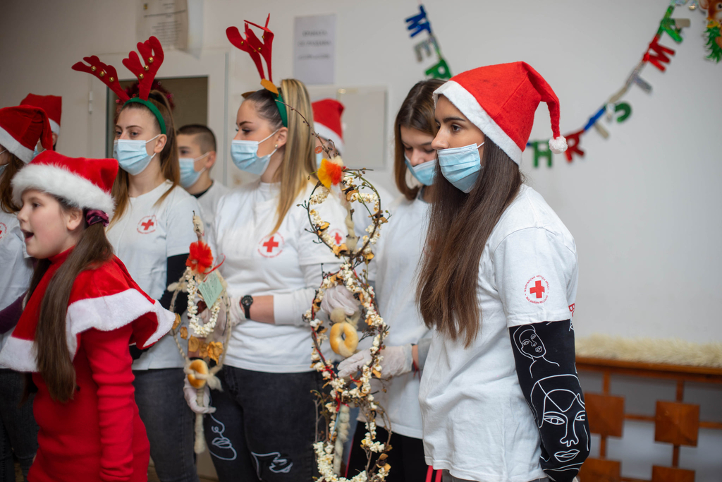 Възпитаниците на зверинското школо поздравиха медиците и доброволците от БЧК с тематична музикална програма, подариха им ръчно изработени сурвачки и пожелаха на всички да намерят своята четирилистна детелина, която да им донесе здраве, късмет и щастие през 2022 г.