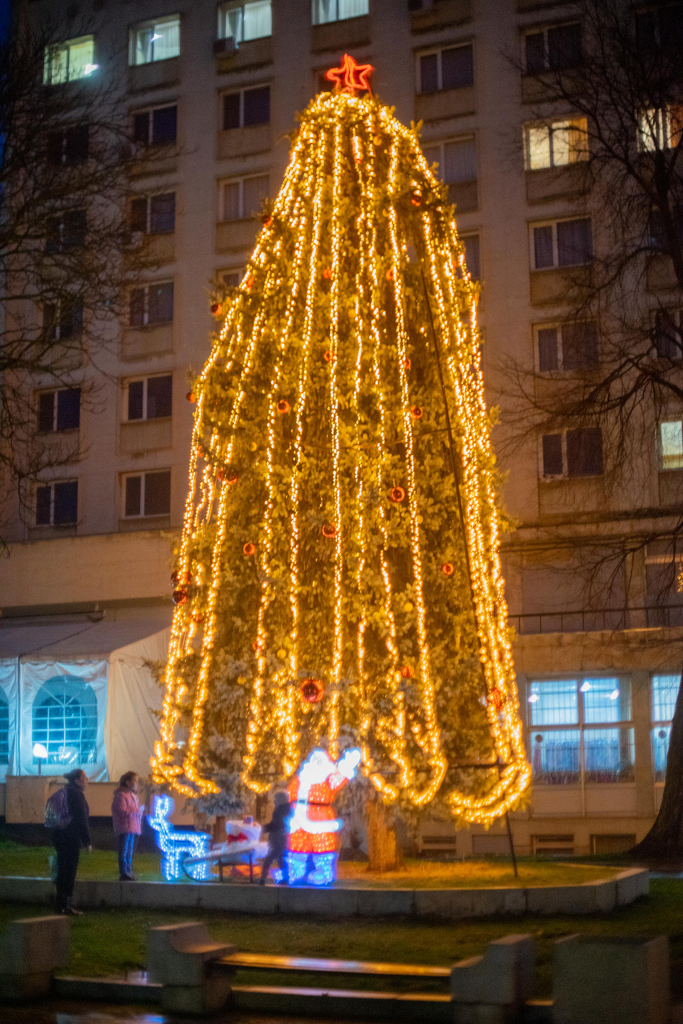По традиция 12-метровото живо дърво на пл. „България” е украсено с пъстроцветни светещи гирлянди, лампички и декоративни топки, а на върха и е поставена червена звезда. Празничната украса допълват декоративна фигура на добрия белобрад старец Дядо Коледа и светещо еленче с шейна и подаръци.