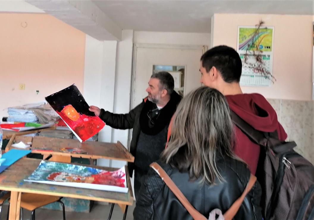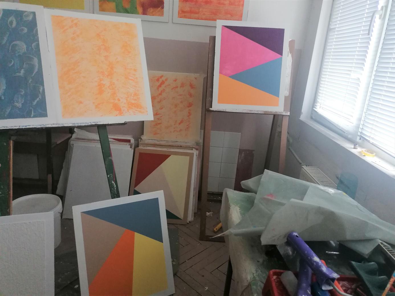 „Това какво е по-точно?”, питам го насред една стая със стативи, рисунки, платна и боички, която се намира извън основната сграда на ПГСАКН.